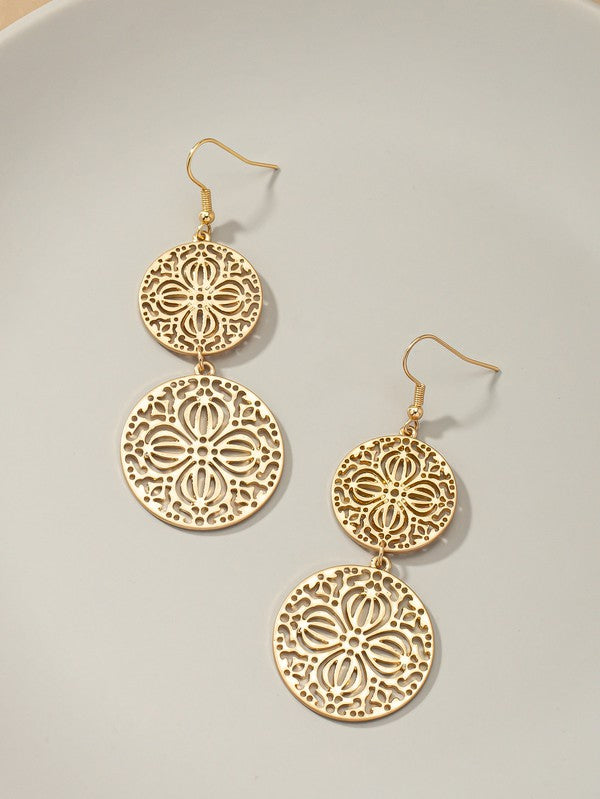 Elevate your accessory collection with the Filagree Circle Drop Earrings, expertly crafted to combine delicate artistry with modern elegance. These earrings feature intricate filigree work within a graceful circular design, offering a lightweight yet striking statement piece. Perfect for both professional settings and special occasions, they add a refined touch that complements a variety of styles with subtle sophistication.
