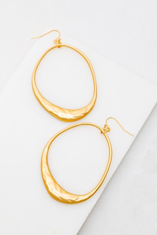 These Sherry Dangle Hoop Earrings feature a distinctive hammered irregular shape that adds artisanal character to your look. Crafted from durable alloy casting and finished with matte gold plating, they offer a sophisticated yet understated elegance. Measuring 2.0" by 3.0", these earrings provide a comfortable, eye-catching statement suitable for both professional and casual settings.