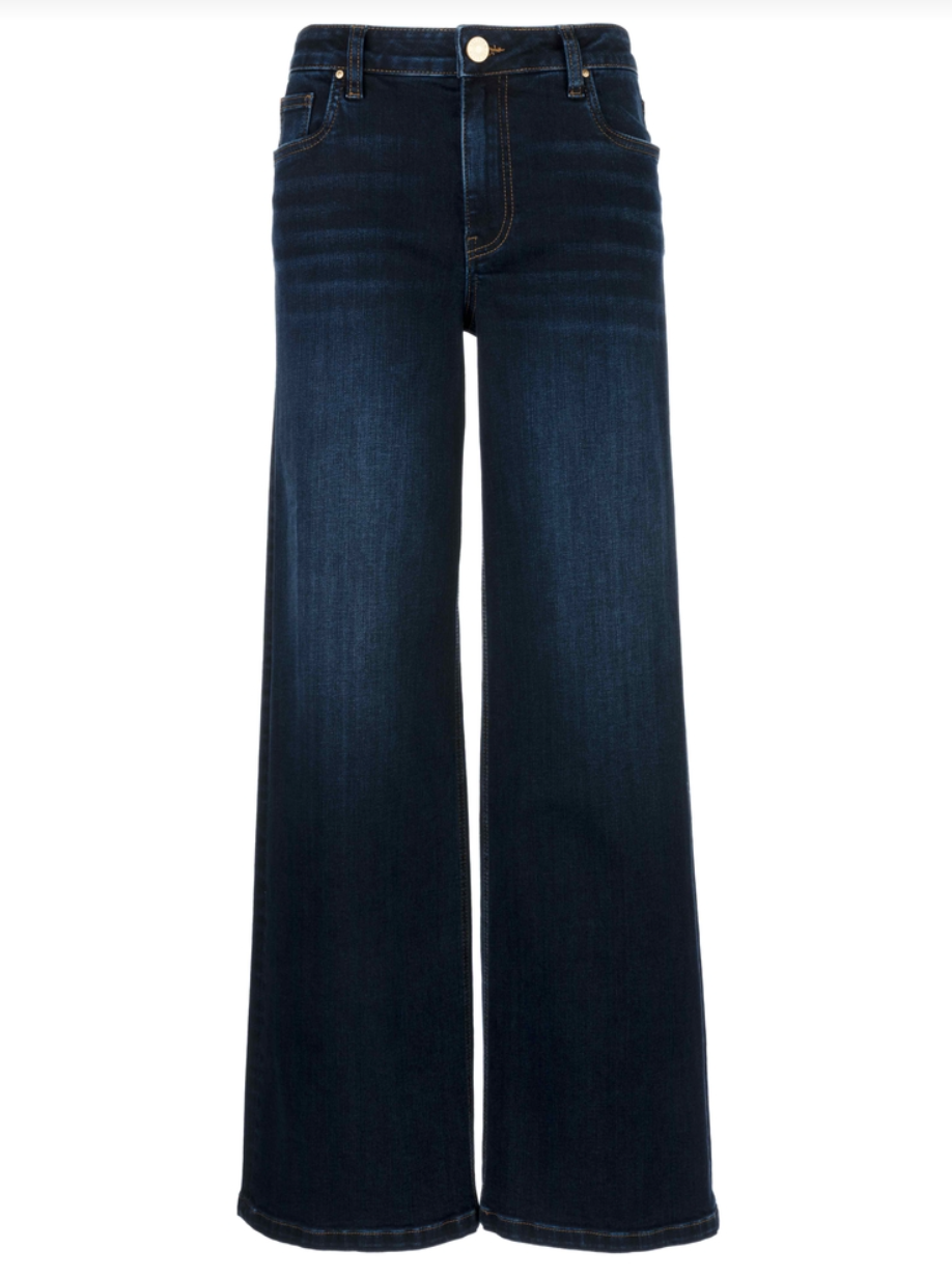 These 31.5" high-rise wide-leg jeans combine classic denim durability with a modern silhouette, designed to elongate the legs and provide comfortable movement. The wide leg cut offers a relaxed fit while maintaining a polished appearance, making them versatile for both casual and dressier occasions. Crafted with attention to detail, they are an excellent choice for those seeking a stylish yet practical wardrobe staple.