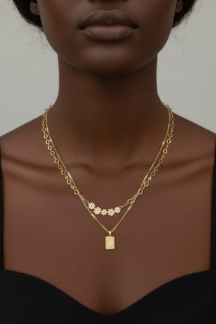 Tia Tiered Flower Pendant Necklace Elevate your everyday elegance with this striking tiered flower pendant necklace. Featuring delicate layered petals that catch the light beautifully, the sculptural design adds dimension and sophistication to any outfit. The pendant hangs gracefully from a refined chain, making it versatile enough for casual wear yet polished enough for special occasions. A timeless piece that transitions seamlessly from day to evening.