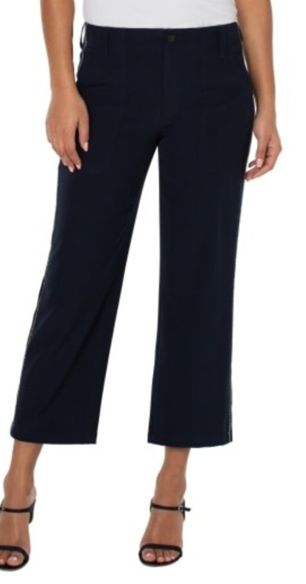 Cargo Wide Leg Cropped Pants w/ Zipper Detail
