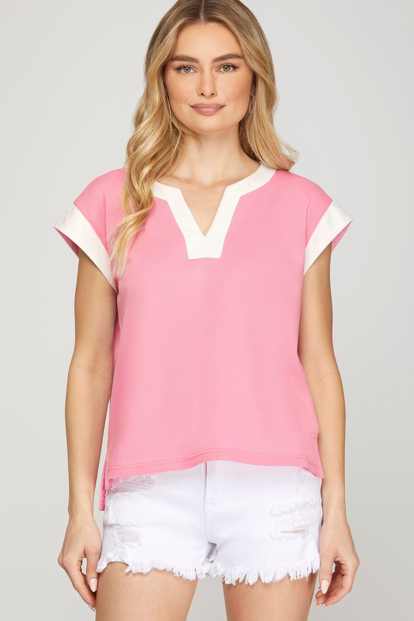 Shelly Contrast Trim Drop Shoulder Top