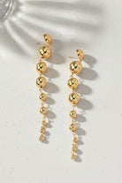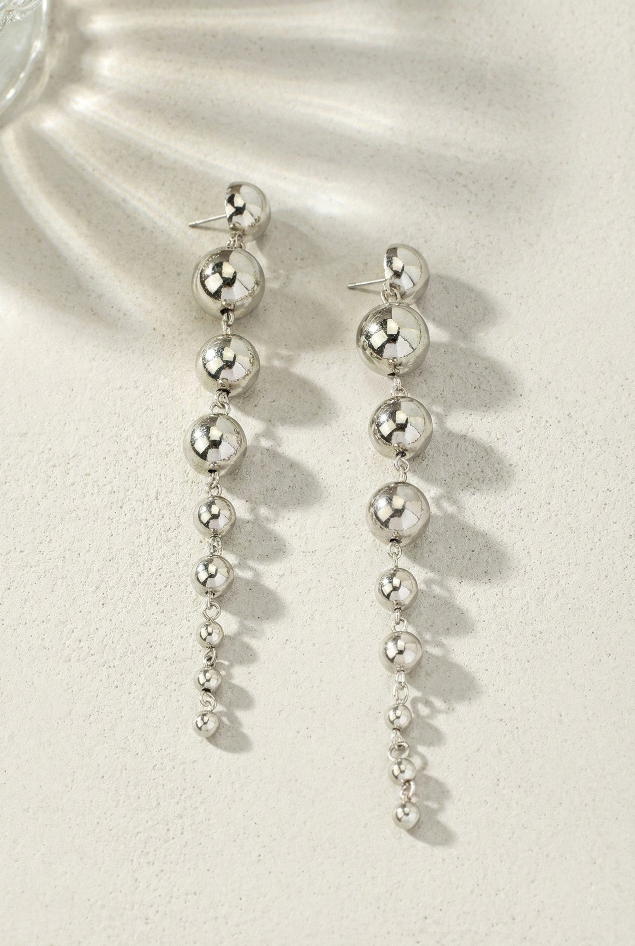 Quinn Linear Ball Drop Earrings Elevate your everyday elegance with these refined linear ball drop earrings. Featuring a minimalist design with graduated spheres suspended from a sleek bar, these earrings deliver sophisticated movement and light-catching dimension. The streamlined silhouette complements both casual and polished looks, making them a versatile addition to your jewelry collection. Perfect for layering or wearing solo, these drops offer modern sophistication with timeless appeal.