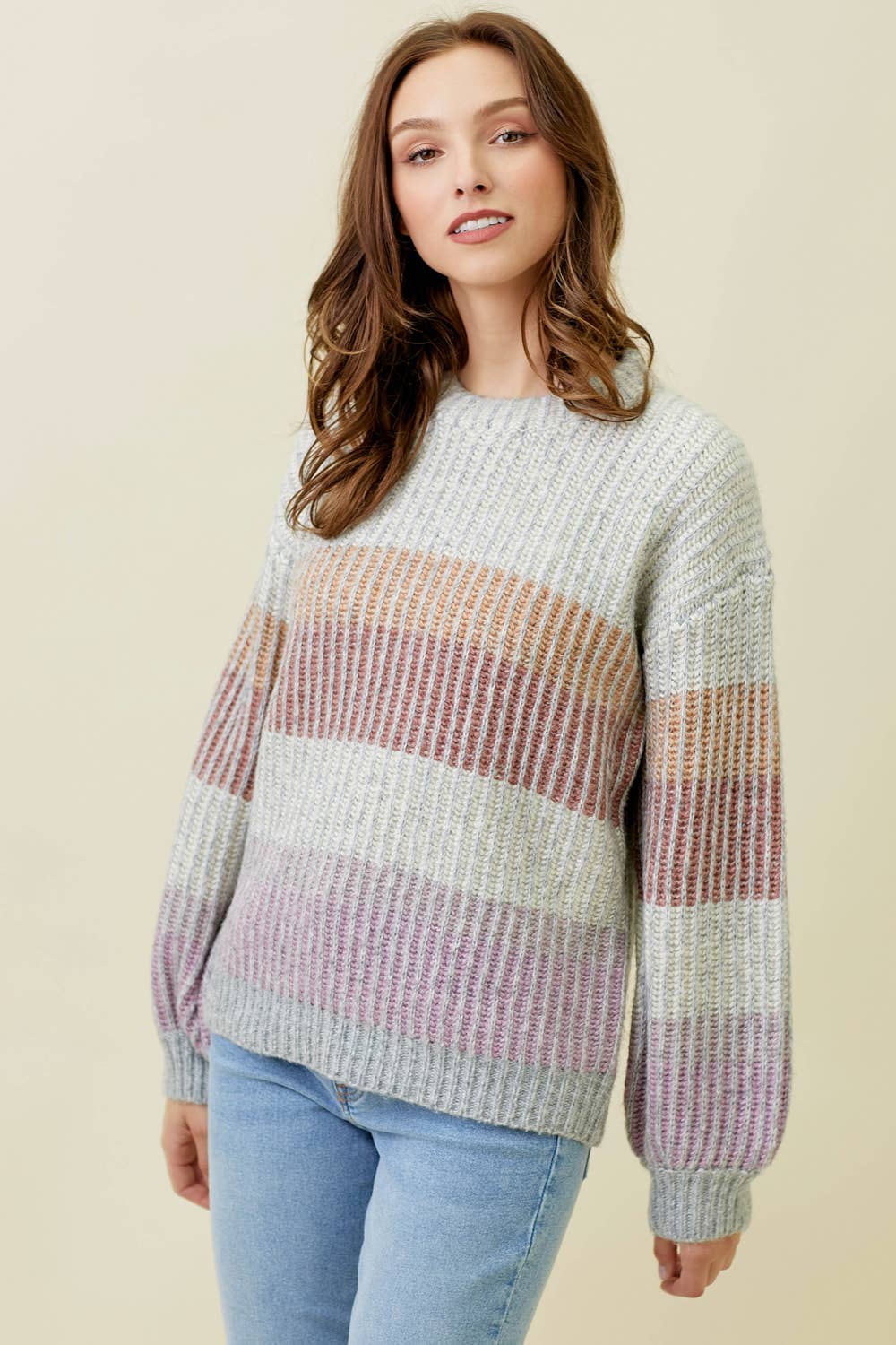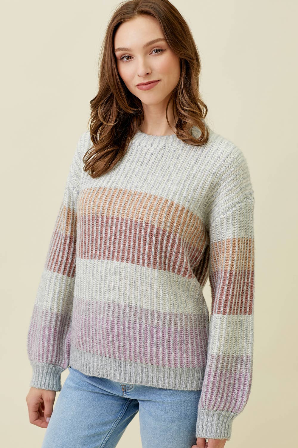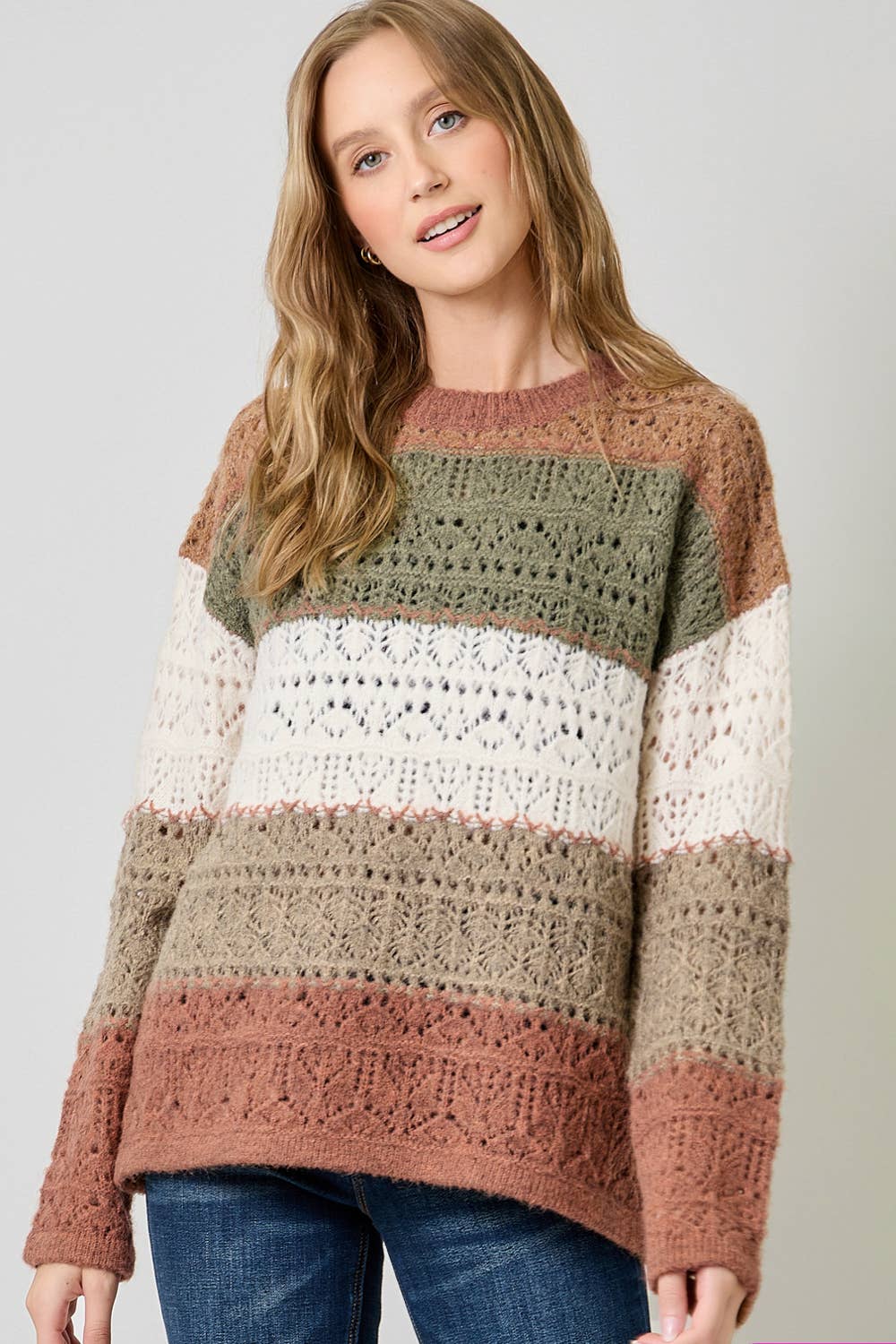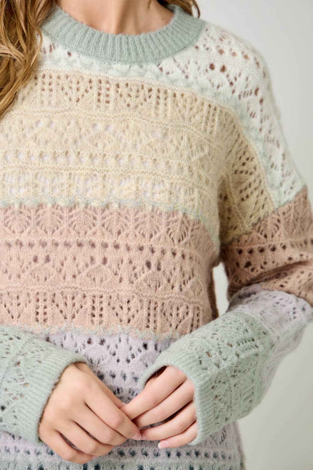 Pamela Two-Toned Color Block Crew Neck Sweater
