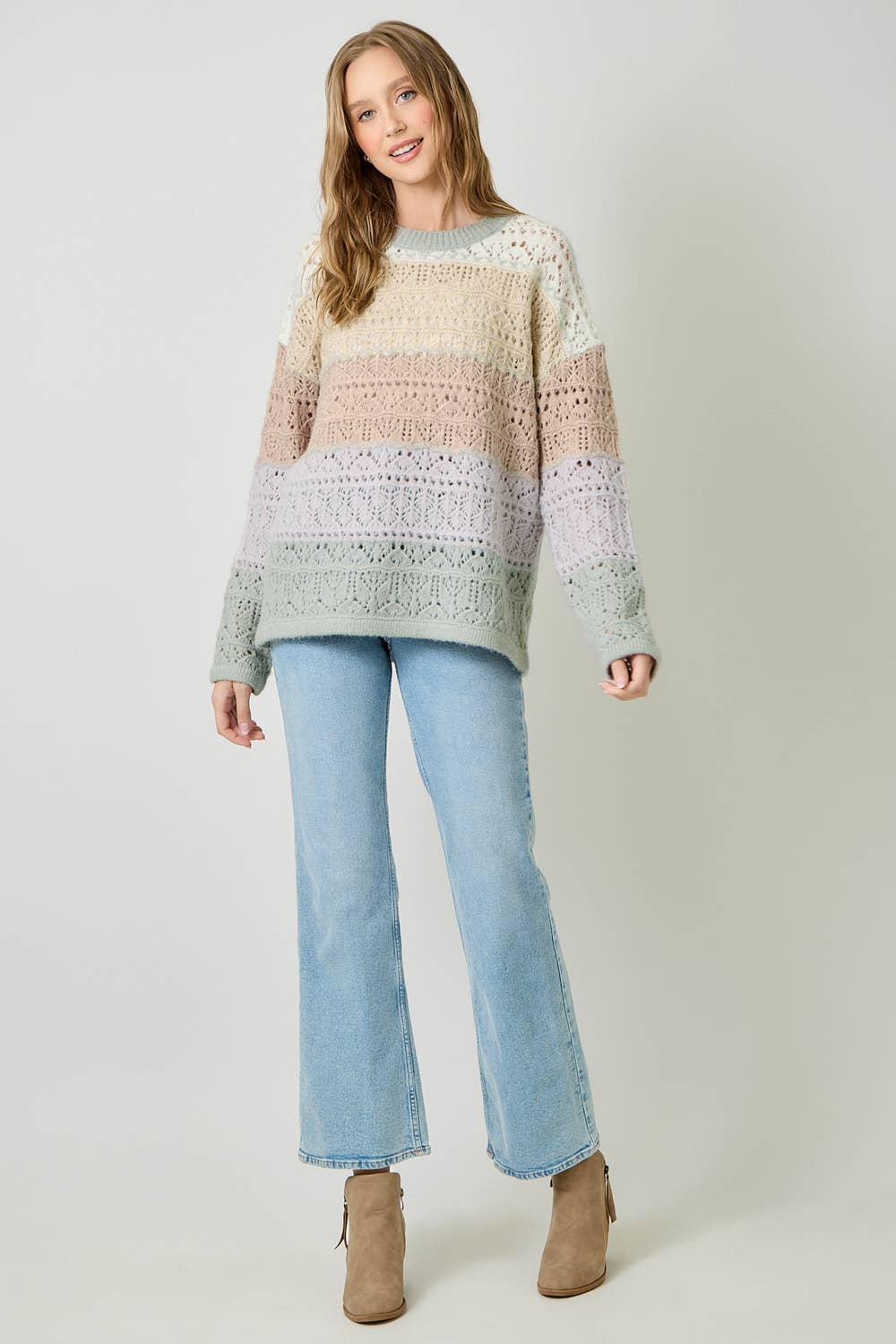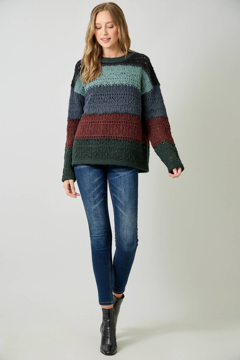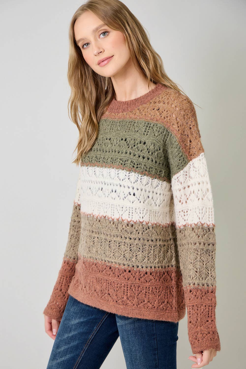 Pamela Two-Toned Color Block Crew Neck Sweater