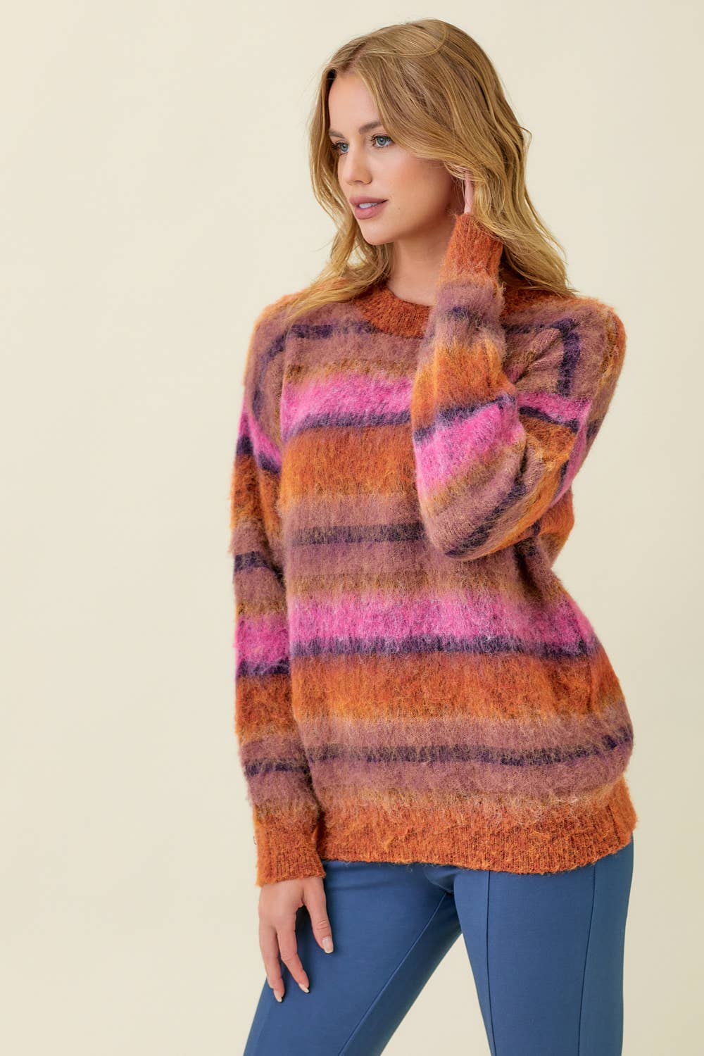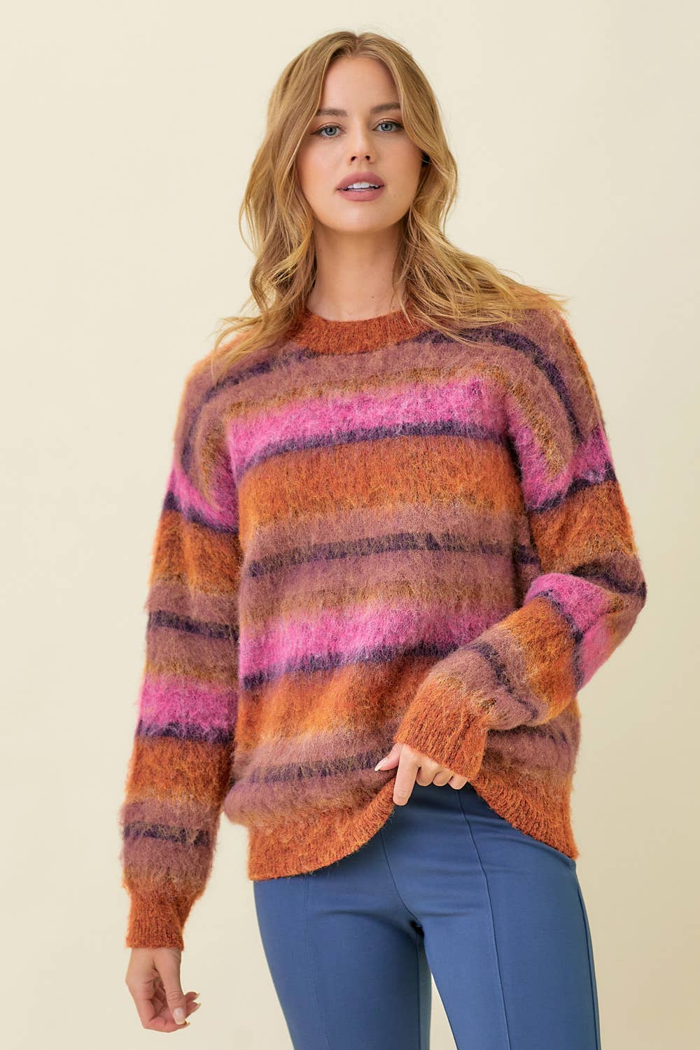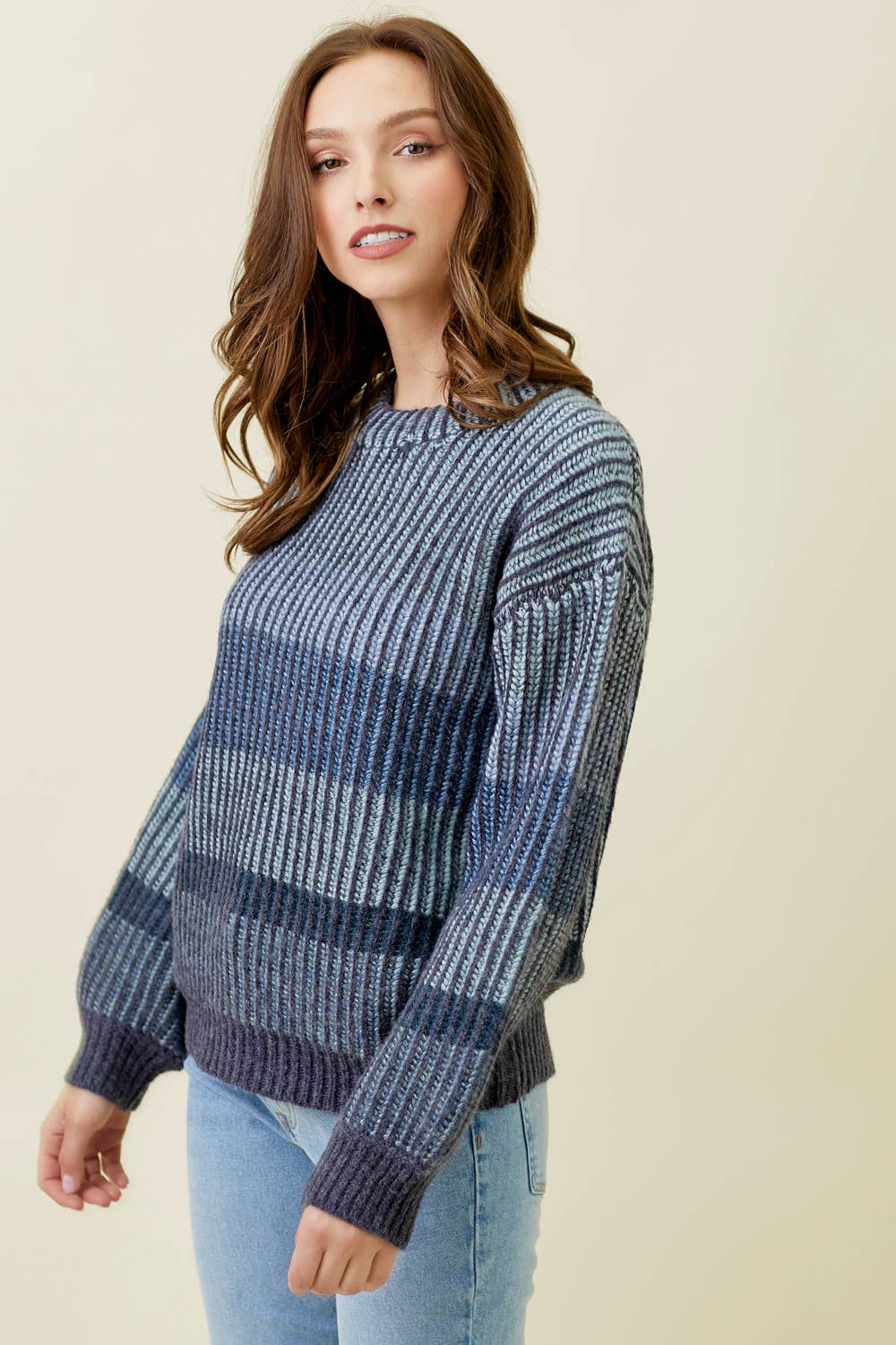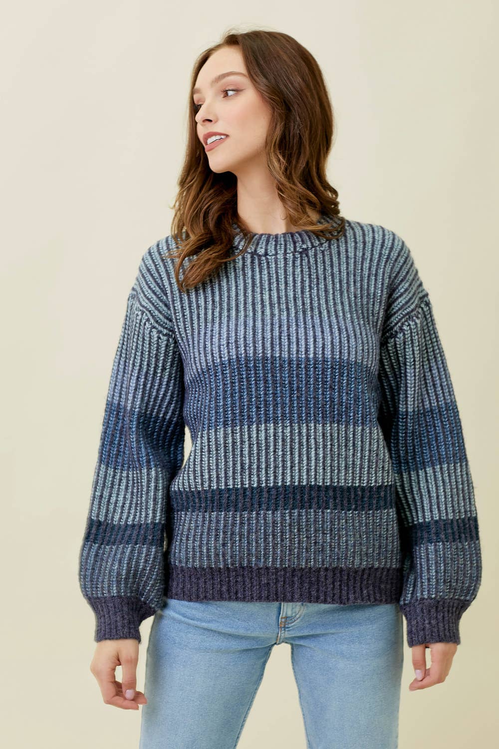 Pamela Two-Toned Color Block Crew Neck Sweater