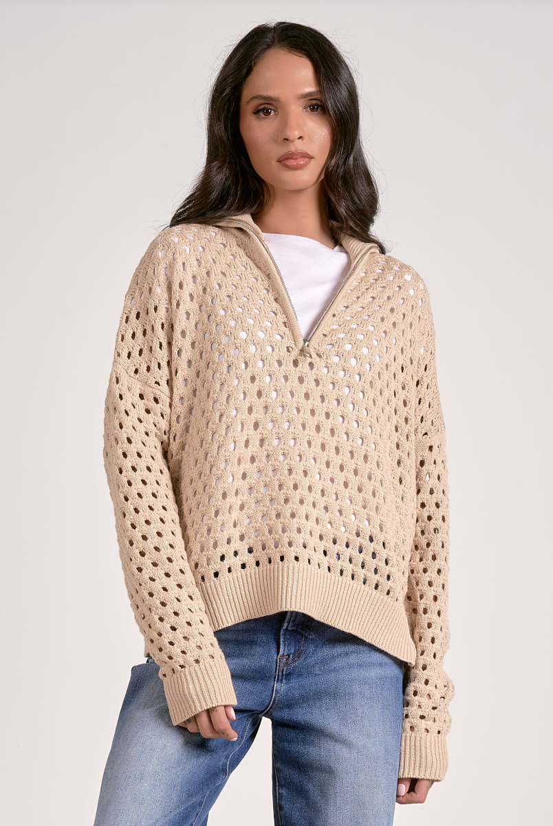 Lynda Mesh Half Zip Sweater