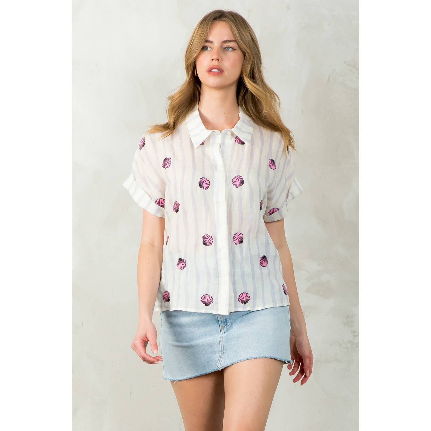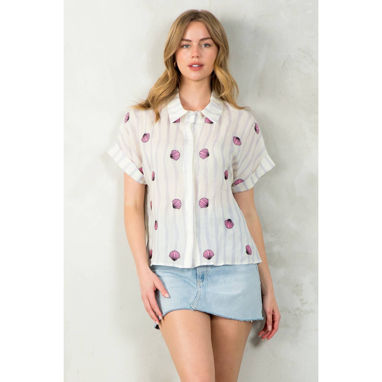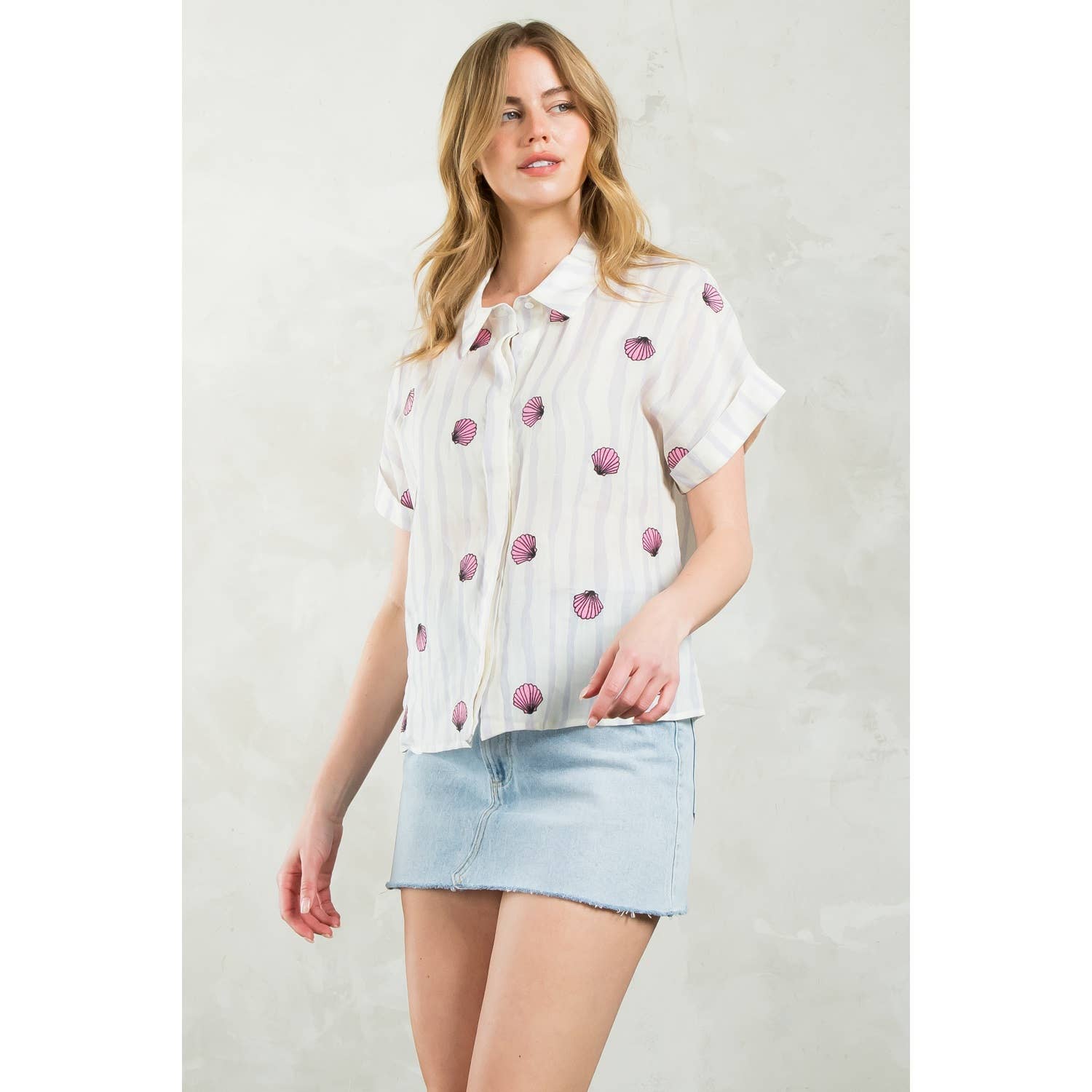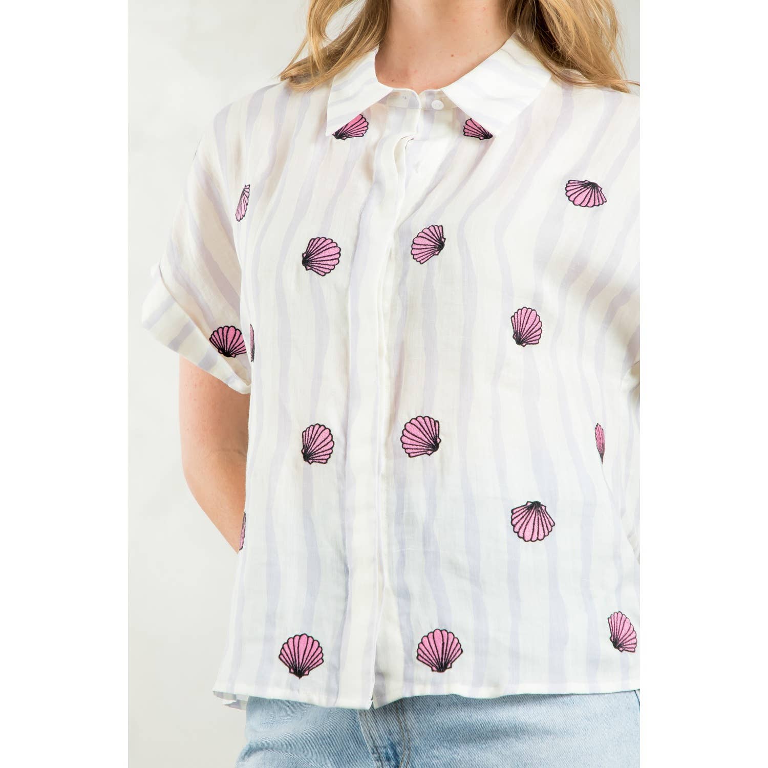 Striped Seashells Short Sleeve Top