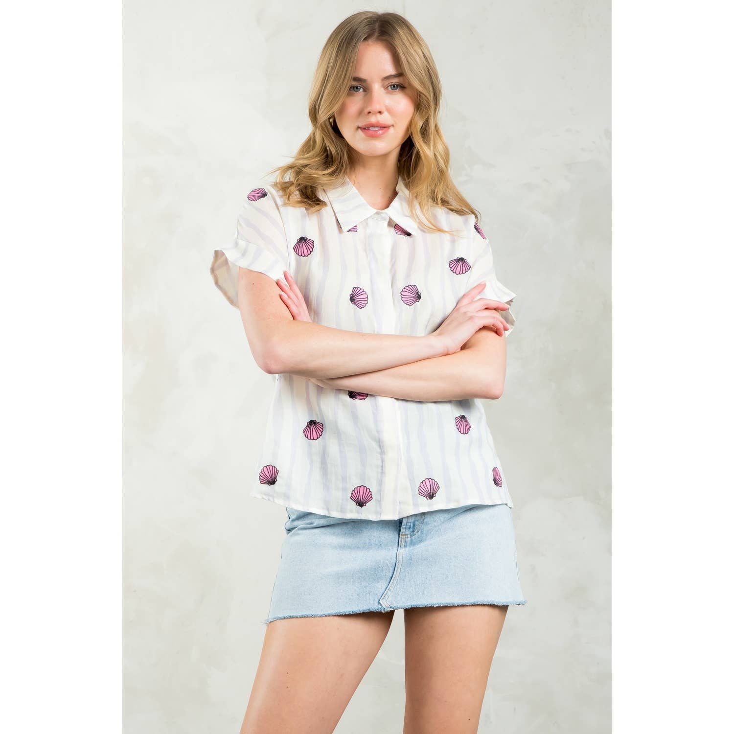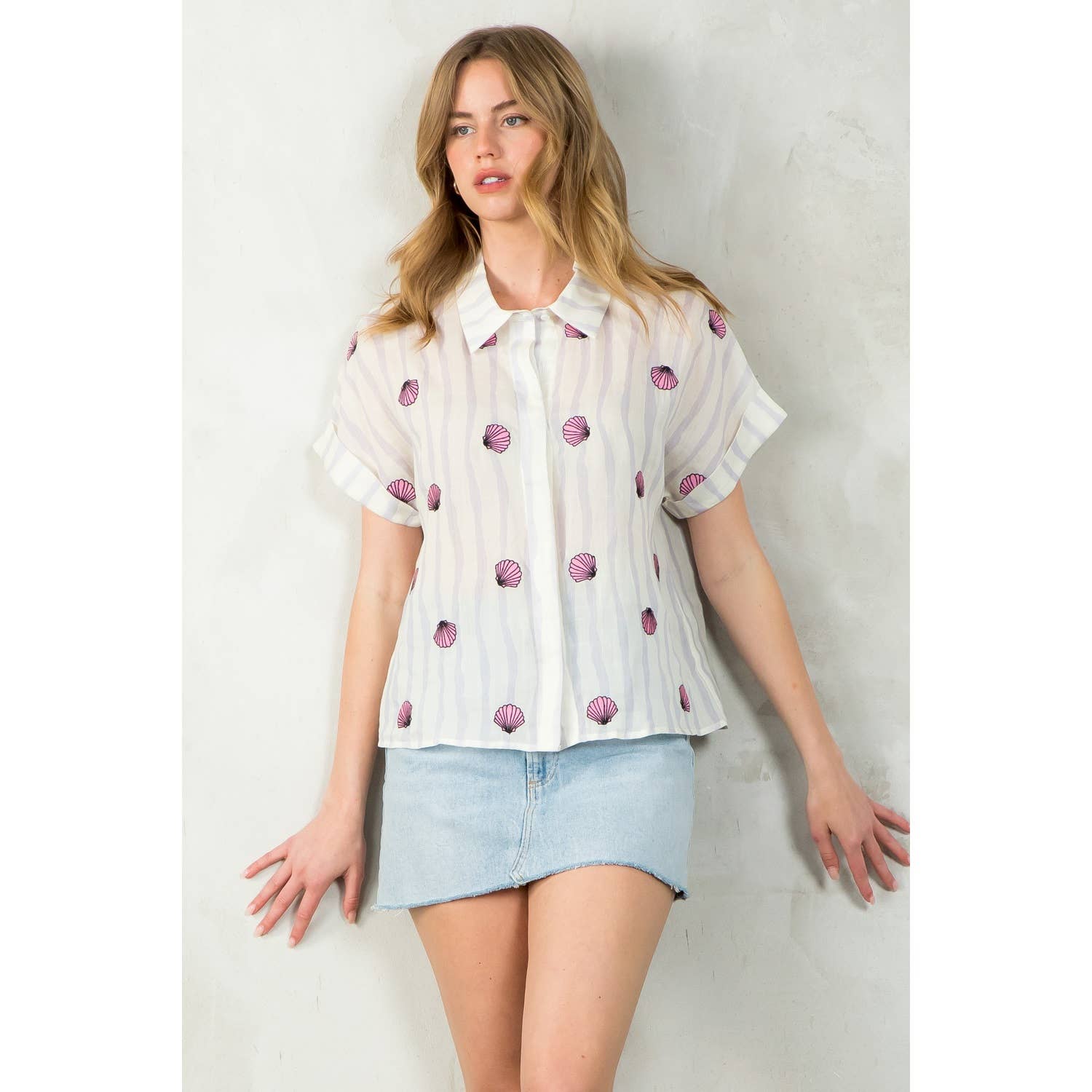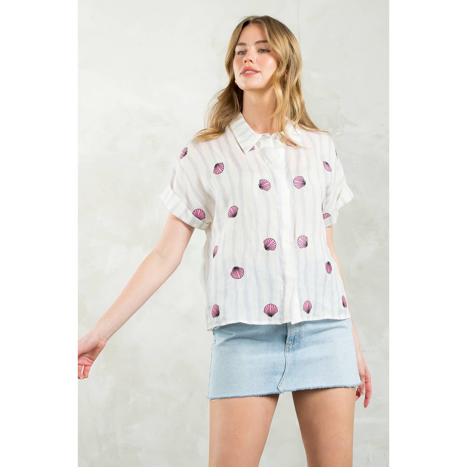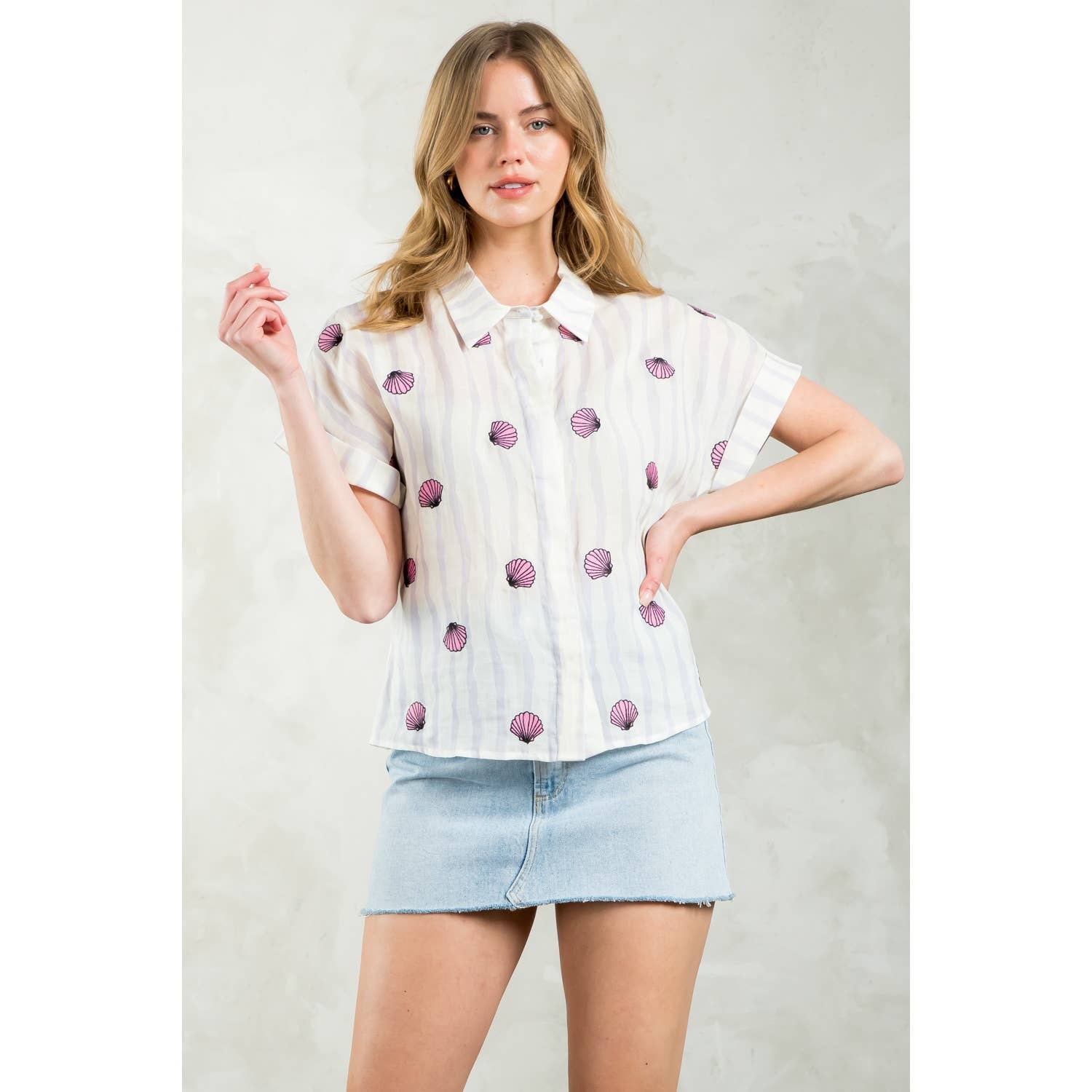 Striped Seashells Short Sleeve Top