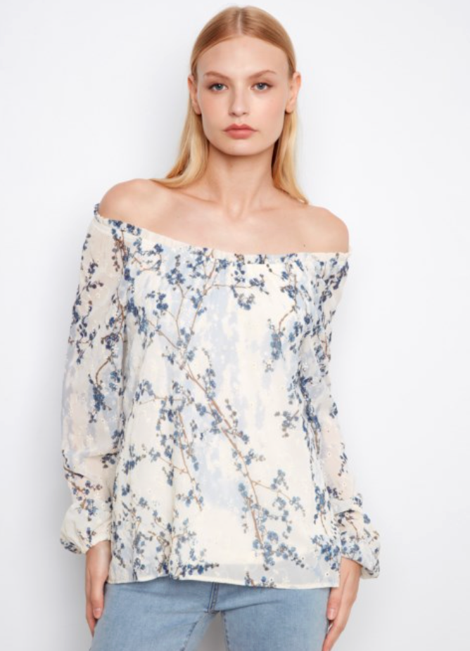 Long Sleeve Blossom Off Shoulder Top