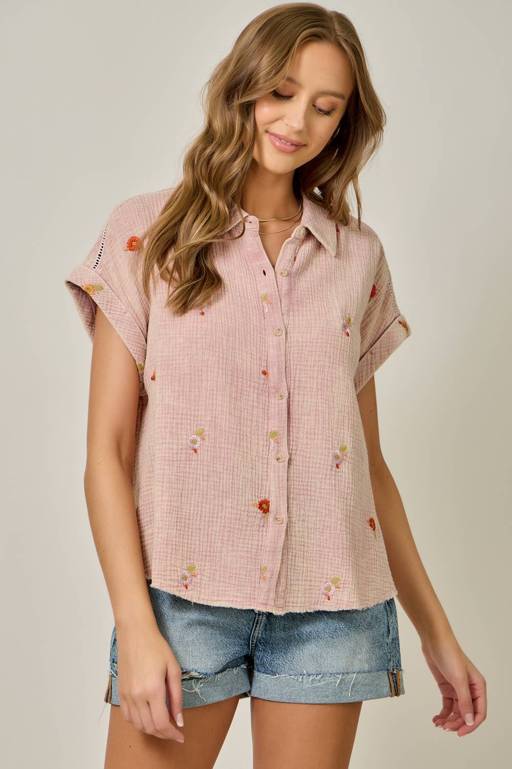 Washed Embroidery Top