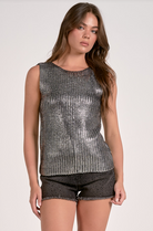 Upgrade your wardrobe with the Francine Metallic Crewneck Sleeveless Sweater. Made with a luxurious metallic material, this sleeveless sweater adds a touch of sophistication to any outfit. The crewneck style offers a timeless and versatile look, making it perfect for any occasion. Elevate your style game while staying comfortable and chic.