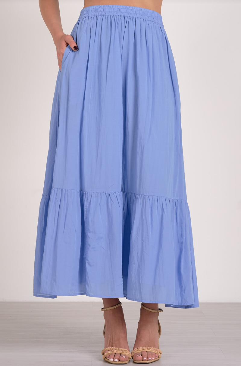 This Ellie Tiered Midi Skirt is a versatile and stylish addition to any wardrobe. Made with high-quality fabric, it features a tiered design that adds depth and movement to any outfit. Perfect for both casual and formal occasions, this skirt offers comfort and sophistication in one.